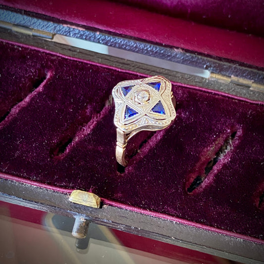 Art Deco Sapphire and Diamond Ring - Square Shape