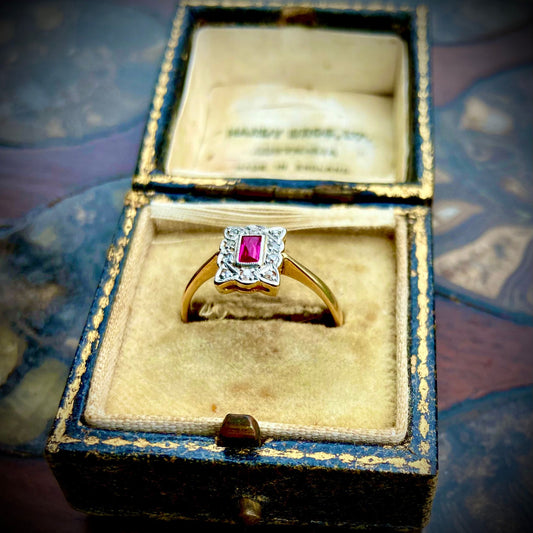 Rectangular Ruby and Diamond Art Deco Ring
