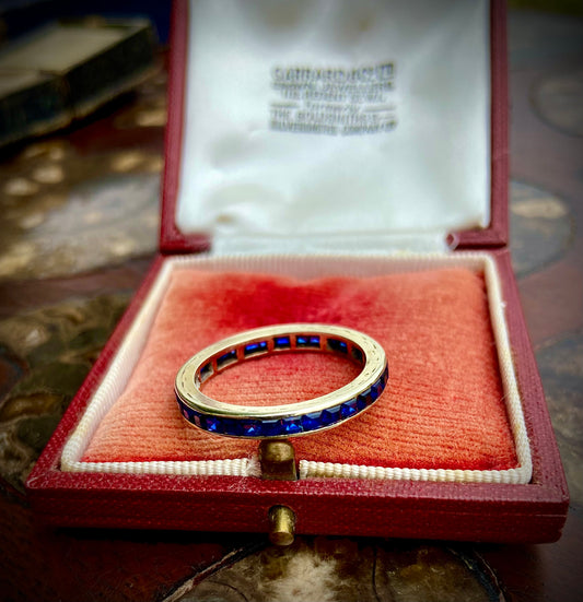 Stunning antique sapphire eternity ring, set in white gold.
